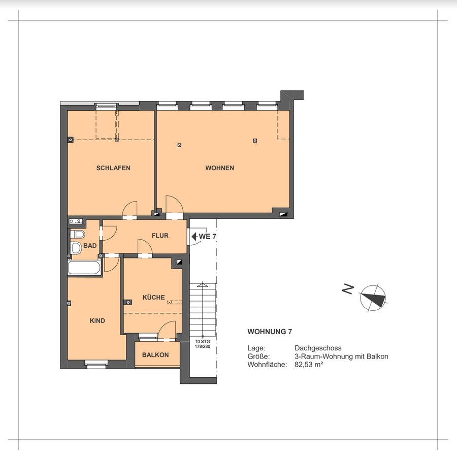 WE im DG Fläche ca. 82,53 m² Kaltmiete: 455,00 €/ p.m., inkl. Nebenkostenvorauszahlung 760,0 €/ p.m.